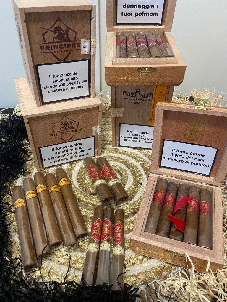 - Principes Claro Short Robusto: La Liga di tabacchi dalla Valle del Cibao sono racchiuse in una fascia Connecticut Ecuador, il tutto si armonizza in una fumata perfetta dalle note terrose, fino ad arrivare al legno e al cedro, con un retrogusto di noci.